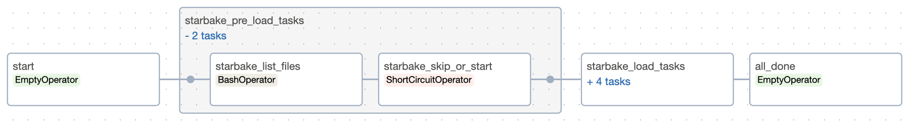 - DAG configuration(s) and their references within the loads and tasks